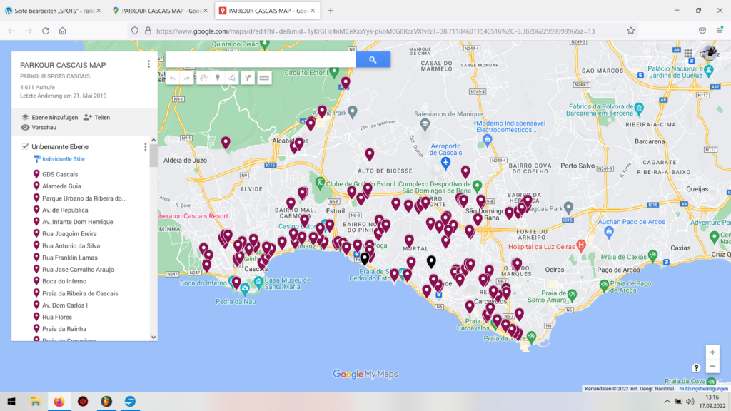 Da ich zwei Jahre in Portugal gelebt habe, habe ich eine Spotmap für Cascais, bei Lissabon angelegt. Es gibt zu sehr viele Spots Fotos, damit ihr wisst, was dort auf euch wartet.