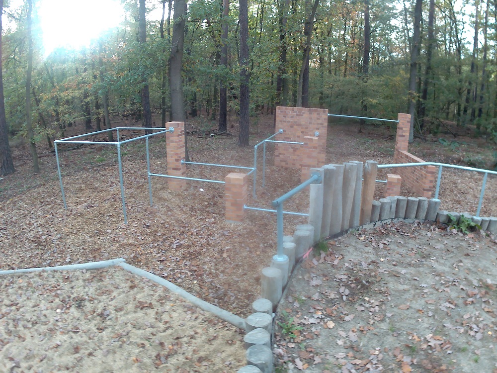 Ebenfalls fällt bei den meisten Parkour-Parks der harte Steinboden weg (im Bsp. Sand- und Holzuntergrund).